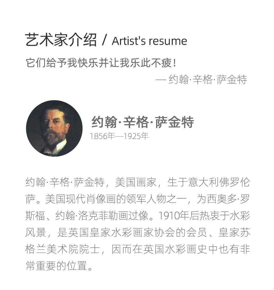 萨金特水彩风景画 博物馆级复刻版画 现代简约客厅装饰画餐厅挂画 简介