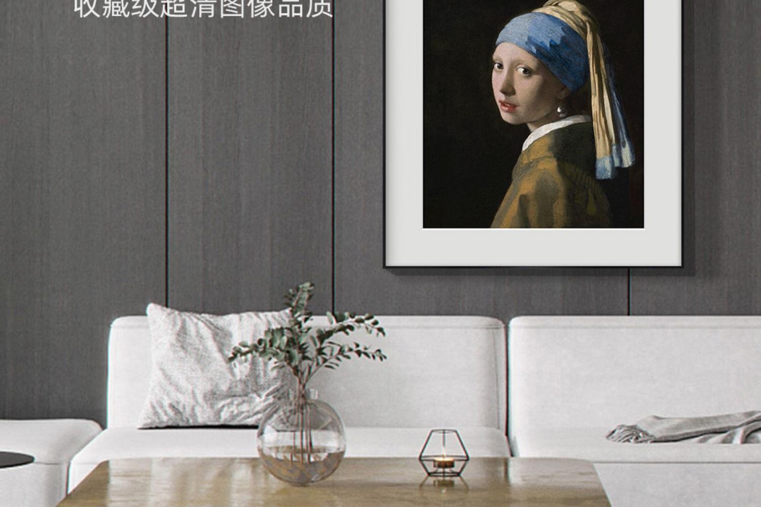 戴珍珠耳环的少女 博物馆级复刻版画 欧式客厅装饰画轻奢玄关挂画