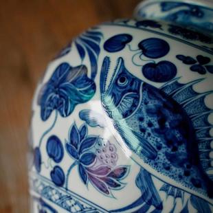 待月观山于2016年成立,窑主陈平。待月观山专注于青花,并且一直专注仿古,坚持传统灰釉古法烧造,无论是它的图案、青花发色,还有釉面质感,都指向了明代青花的特点。青花发色沉入胎骨,锡光斑非常精美,线条生动老辣。原矿纯仿古胎釉,采用古法工艺,两次高温烧制,挑战工艺极限,釉面莹润肥厚。所有创作基本发源于古物,力求每一款都是精品。